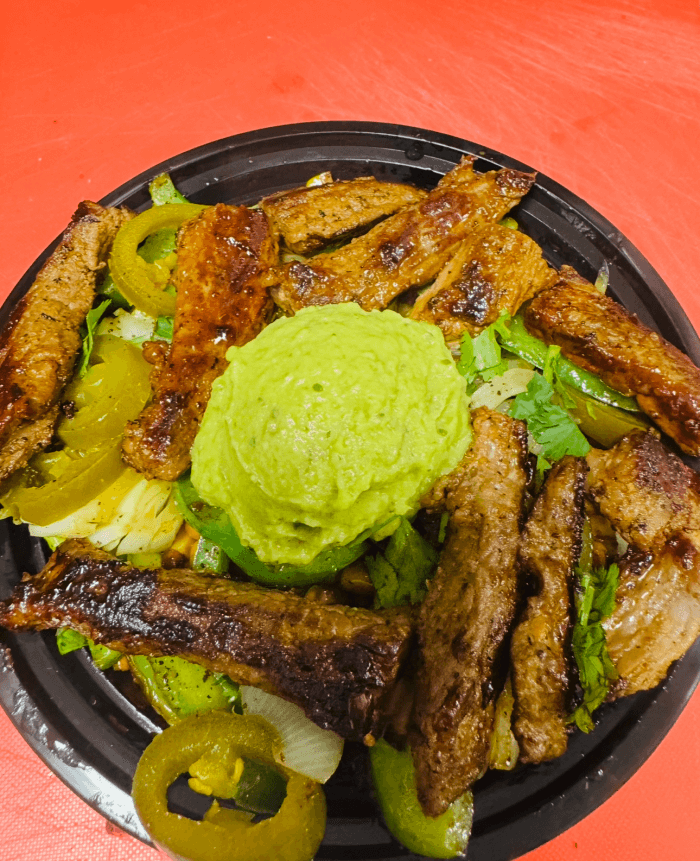 Served with your choice of rice, crisp lettuce, fresh pico de gallo, grilled onions and bell peppers, corn, jalapeños, sour cream, shredded cheese, fresh cilantro, black beans, Guacamole, and your choice of salsa or sauce.”