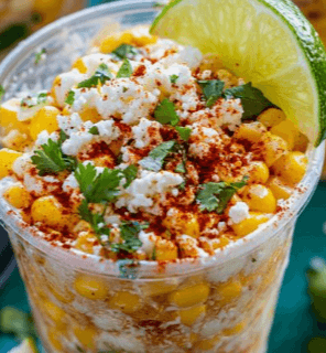 Grilled conr topped with cotija cheese, mayo, chili powder, and lime.